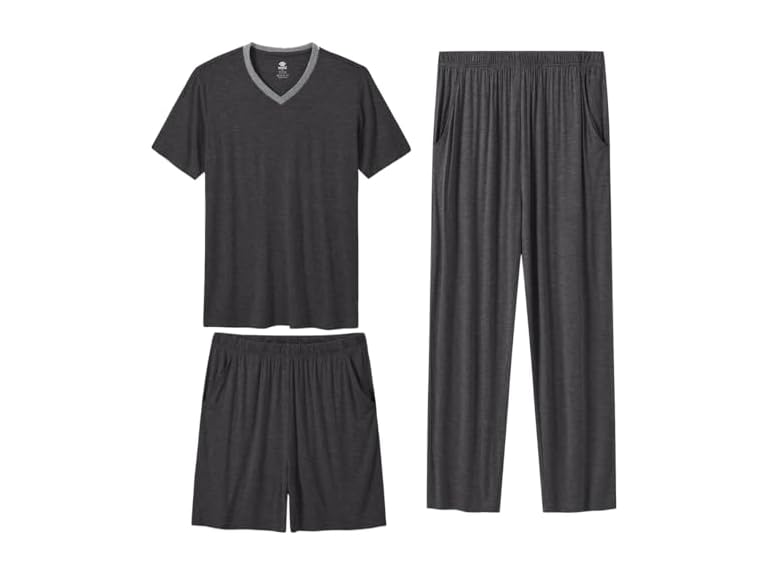 - (1) MoFiz Men's Pajama Set 3 Pieces Ultra Soft Modal Sleep Set Pyjama Bottoms Pants T-Shirt Pajama Shorts for Men Dark Gray L
