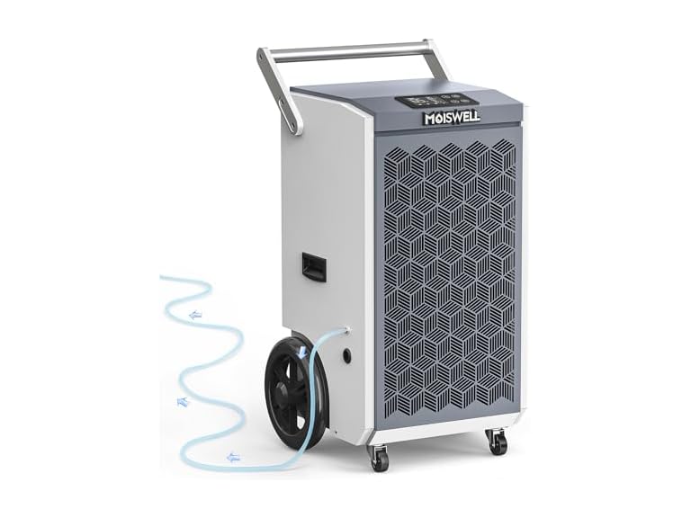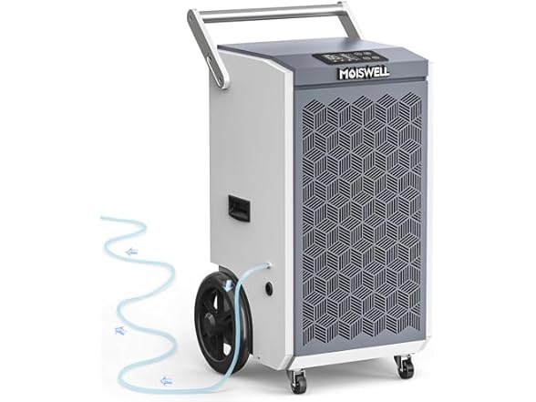 - 260 Pints Dehumidification Capacity - Tackle humidity with ease using Moiswell commercial dehumidifier, offering an impressive dehumidification capacity of 260 pints per day, 110 pints per day at AHAM. Ideal for large spaces such as basements, garages, warehouse, and commercial areas, designed to remove excess moisture efficiently.