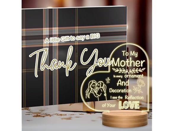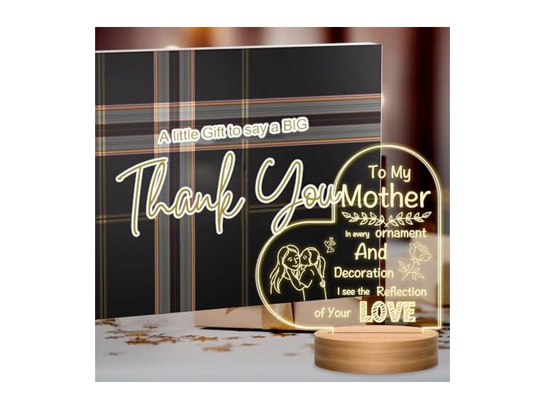 - (1) UneedMe Christmas Gifts for Mom from Daughter - Acrylic Heart Night Light, Thank You Gifts To My Mother for Mother's Day Birthday Christmas Thanksgiving, Warm Night Lamps Decoration for Home Bedroom Office