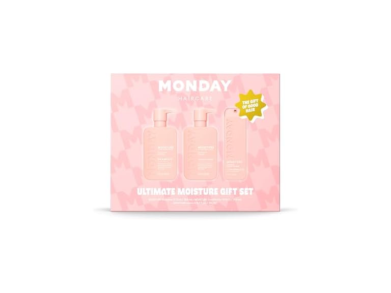 - ULTIMATE MOISTURE GIFT SET: A hair-hydrating routine of MONDAY’s best-selling Moisture Shampoo 12 oz, Moisture Conditioner 12 oz and Moisture Leave-In Conditioner 5.1 oz.