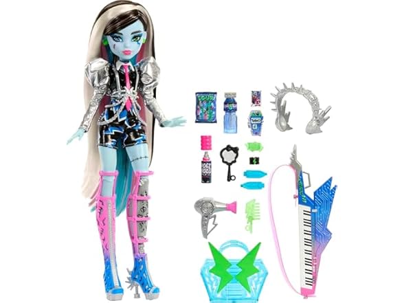 - Monster High Doll, Amped Up Frankie Stein Rockstar with Instrument & Performance-Themed Accessories Like Headphones