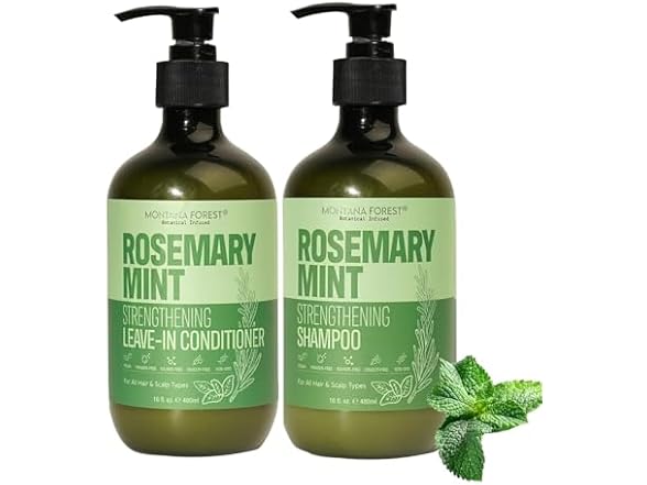 - 𝗛𝗔𝗜𝗥 𝗖𝗔𝗥𝗘 𝗦𝗘𝗧 – This gift set includes 1x Montana Forest Rosemary Mint Strengthening Leave-In Conditioner 16 fl oz and 1x Rosemary Mint Strengthening Shampoo 16 fl oz, crafted to hydrate, cleanse, and refresh (Packaging May Vary).