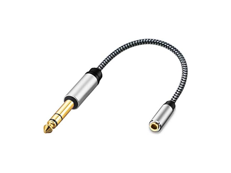 - Maximum Durability: 6.35 to 3.5 adapter cable Braided with unique crystal-nylon materials to ensure minimize any damage from dropping, pulling, bending, twisting, even your pet’s chewing.