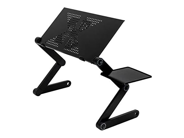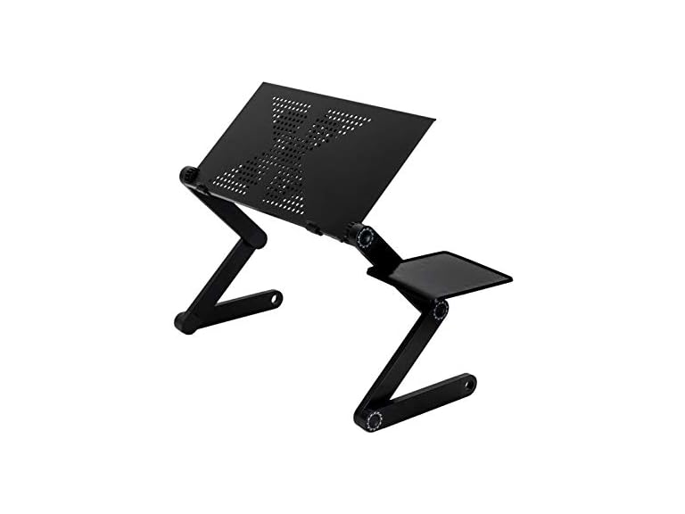 - (1) MOSAJIE Laptop Table, Adjustable Laptop Bed Table, Portable Laptop Workstation Notebook Stand Reading Holder with Large Cooling Fan & Mouse Pad Ergonomic Lap Desk TV Bed Tray Standing Desk