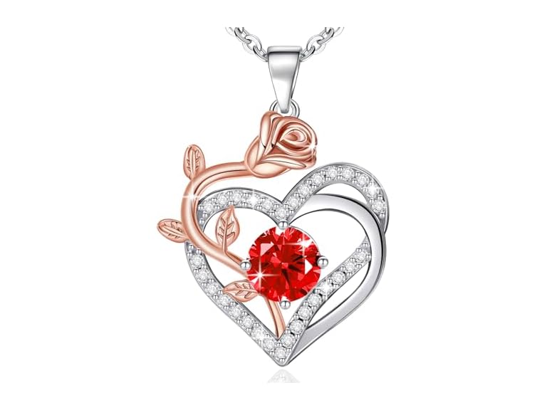 - (1) moshen Rose Heart Necklace for Women,925 Sterling Silver Birthstone Pendant - Gift for Women on Valentine's Day, Birthday, Christmas, Anniversary, Mather's Day (07-July-Ruby)