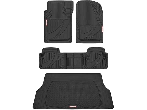 - (1) Motor Trend FlexTough™ Heavy Duty Black Rubber Car Floor Mats All Weather & Cargo Liner for SUV Full Set - Universal Trim to Fit Automotive Floor Mat & Trunk Mats for Cars Interior Accessories
