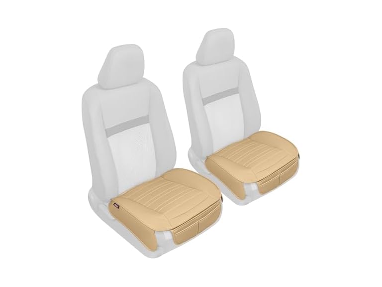 - (1) Motor Trend Seat Covers for Cars Trucks SUV, Faux Leather Beige Padded Seat Covers with Storage Pockets, Premium Interior Car Seat Cover, 2 x Front Seat Covers