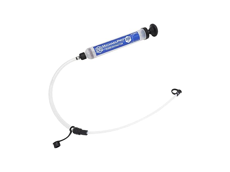- (1) MichaelPro MP009082 Fluid Extractor and Oil Pump for Oil Transfer, 200cc Fluid Pump Syringe to Extract and Refill, Anti-Leak Cap, Transparent Cylinder & Clear Markings for Intuitive Liquid Changing