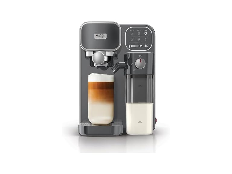 - (1) Mr. Coffee Prima Latte Luxe, Single/Double Shot Espresso, Cappuccino, Latte Machine with Optimized Frother and Convenient One-Touch Control Panel