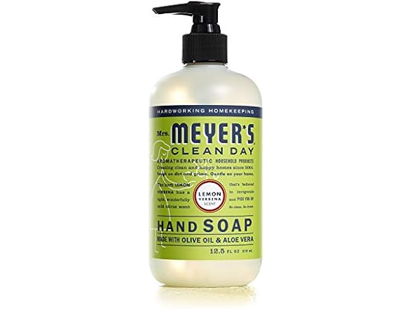 - (1) MRS. MEYER'S CLEAN DAY Hand Soap, Made with Essential Oils, Biodegradable Formula, Lemon Verbena, 12.5 fl. oz