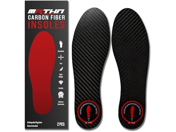 - (1) MRTHN Carbon Fiber Insole 1 Pair, Carbon Fiber Insoles for Men, Carbon Fiber Shoe Inserts | Thin Insoles for Turf Toe, Foot Fractures, Hallux Rigidus Orthotics | Hiking, Sports & Basketball Insoles