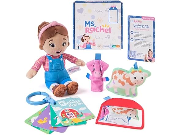 - Ms. Rachel Official Farm Friends Baby Registry Gift Set with Plush, Animals Cards & Finger Puppet, Educational Toys & Baby Toys for Girls & Boys Ages 0+ (Amazon Exclusive)