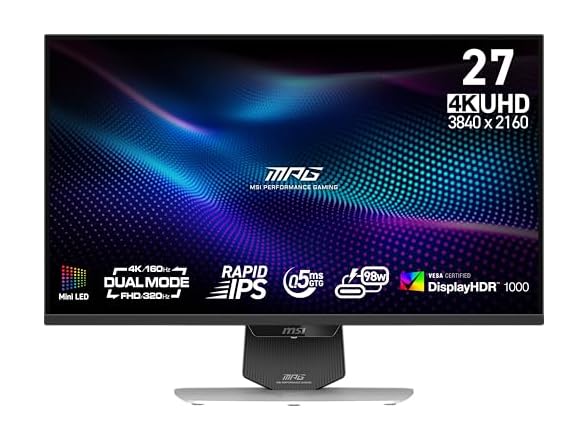 - (1) MSI 27" Gaming Monitor | UHD 3840x2160 | 160Hz IPS Panel | AMD FreeSync | MPG 274URDFW E16M