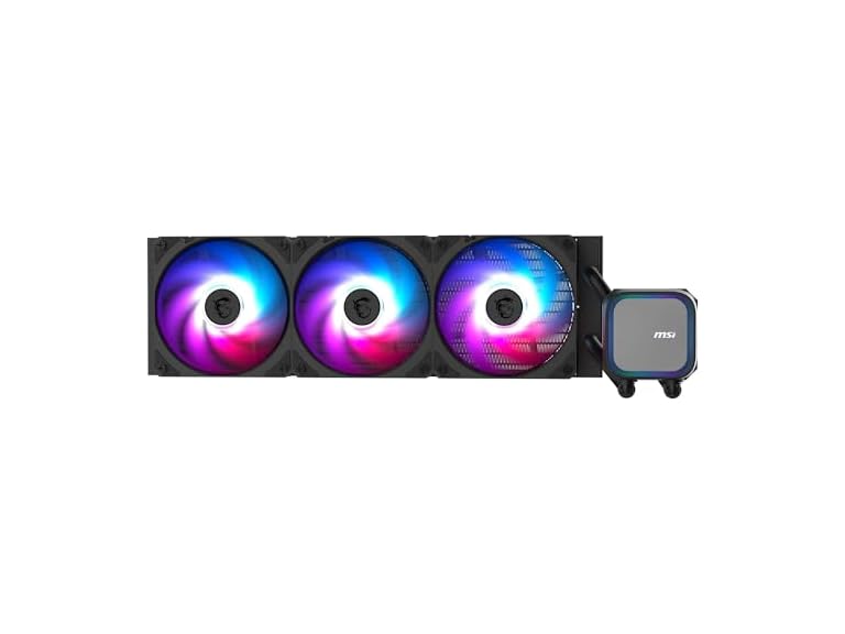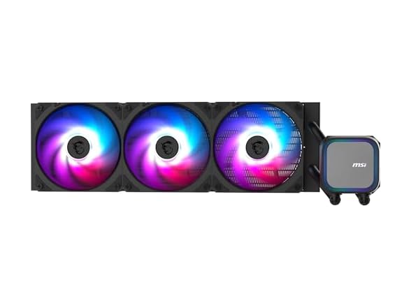 - (1) MSI MAG CORELIQUID A13 360 AIO CPU Liquid Cooler - Full CPU Coverage, Improved Water Channel Design, Minimalism Meets Illumination, CycloBlade 7, Split-Flow Radiator, Rifle Bearing Fans