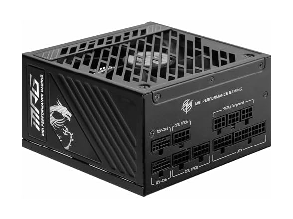 - (1) MSI MPG A1250GS PCIE5 Power Supply, 1250W, 80 Plus Gold, ATX 3.1, PCIe 5.1 GPU Support, Dual Native 12V-2x6, Modular Cable with Two Tone 12V-2x6 Ports, ATX Power Supply