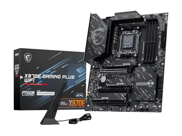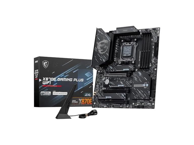 - MSI X870E GAMING PLUS WIFI Motherboard, ATX - Supports AMD Ryzen 9000/8000/7000 Processors, AM5-60A SPS VRM, DDR5 Memory Boost 8200+ MT/s (OC), PCIe 5.0 x16 & 4.0 x4, M.2 Gen5, Wi-Fi 7, 5G LAN