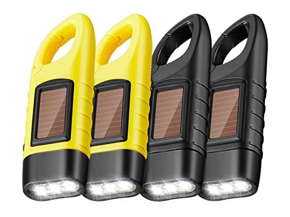 - Hand crank powered flashlights set: each of our crank flashlights contains a solar panel, it can absorbs various kinds of light as a powering method, such as strong and medium sunlight, lamp light and more, these solar flashlights are proper for emergencies, power outages or when you need light