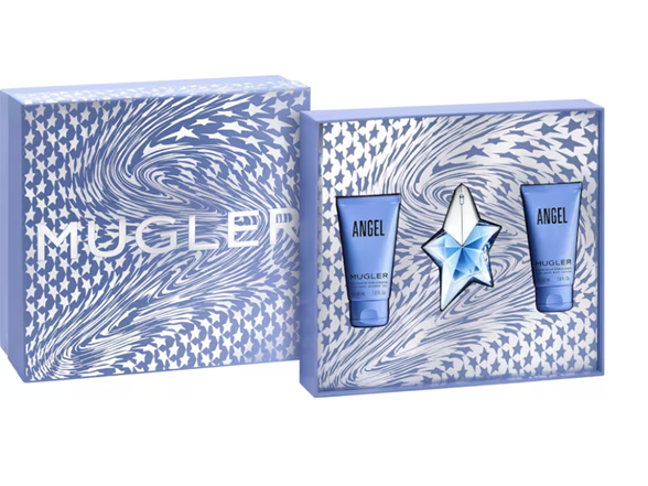 Mugler Angel Eau de Parfum Gift Set, valued at $155, includes Angel Eau de Parfum (25 mL), Angel Body Lotion (50 mL), and Angel Shower Gel (50 mL). Indulge in the iconic Angel fragrance this spring. The Angel woman is confident and seductive, using her allure to achieve dreams. Angel Eau de Parfum is the world's first Gourmand perfume, wilder than dreams.