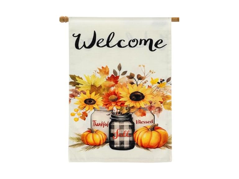 - Double Sided Fall Garden Flag, 12"x18" Welcome Pumpkin Sunflower & Flower House Flag, Best For Thanksgiving Decorations Outside