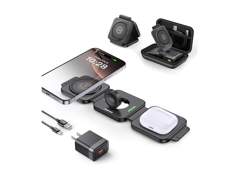 - 【3 IN 1 Magnetic Wireless Charger】The wireless charger stand has a soft silicone pad design that folds 180° and supports three charging modes. This 3 in 1 wireless charging station with strong magnetic design, built-in high-quality magnets. Precise alignment with built-in magnets ensures a secure connection and reliable charging every time. No more misalignment or charging interruptions..If you want to use the magnetic feature of this wireless charger, make sure the phone model is for iPhone 12/13/14/15/16/17 series.