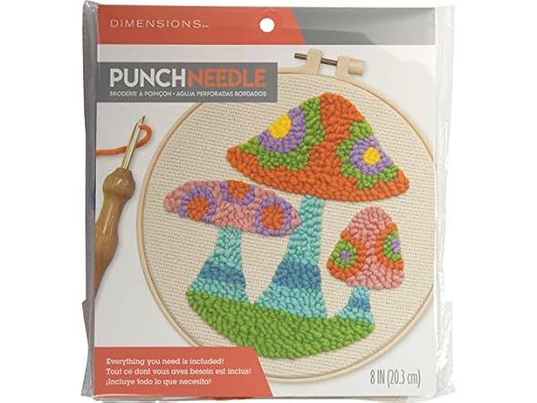 - (1) Dimensions 72-76394 Mushrooms Punch Needle Kit for Beginners, 8" Diameter, Multicolor, 7pcs