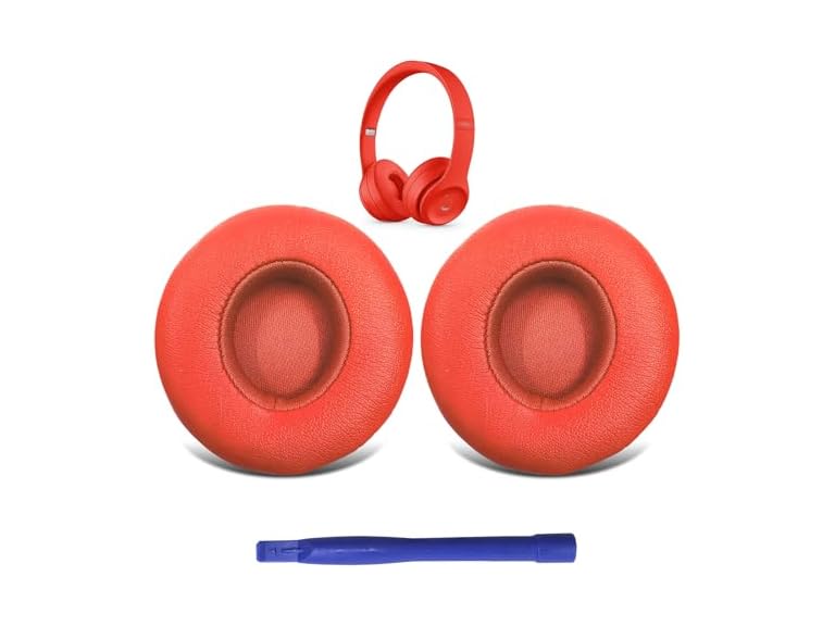- (1) MusiDianTang Earpads Cushions Replacement for Beats Solo 2 & Solo 3 Wireless On-Ear Headphones, with Soft Protein Leatherette Ear Cushions and Acoustic Foam Earcups (Citrus Red)