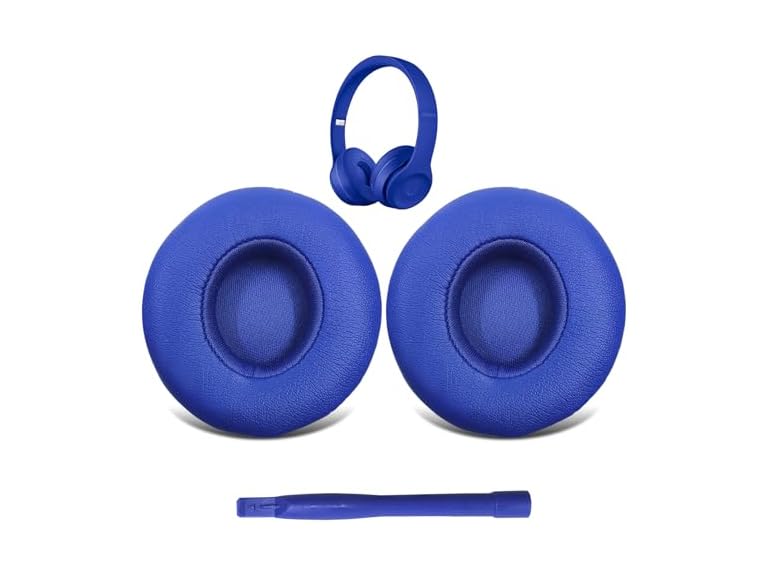 - (1) MusiDianTang Earpads Cushions Replacement for Beats Solo 2 & Solo 3 Wireless On-Ear Headphones, with Soft Protein Leatherette Ear Cushions and Acoustic Foam Earcups (Blue)