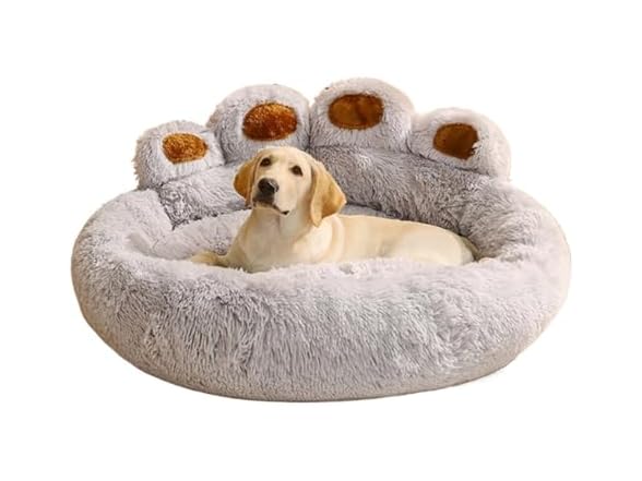 - (1) Fluffy Plush Dog Bed for e Dogs, Winter Warm Pet Sofa Bed with Removable Washable Cover, Orthopedic Support Cushion for Cats, Puppies and Dogs(Light Gery,90cm)