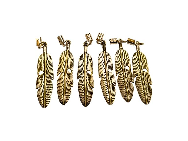 - (1) Myya Craft Supplies Feather Pendants Beads Charms Pendants for Crafting, Jewelry Findings Making Accessory For DIY Bolo tie Necklace Bracelet 6 Pack (Antique Gold)