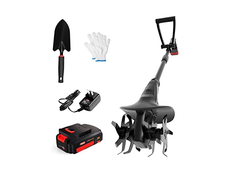 - [CORDLESS DESIGN] Enjoy the freedom of a cordless design with a rechargeable battery that allows you to use the MZK tiller anywhere, anytime. Say goodbye to tangled cords and hello to convenience.