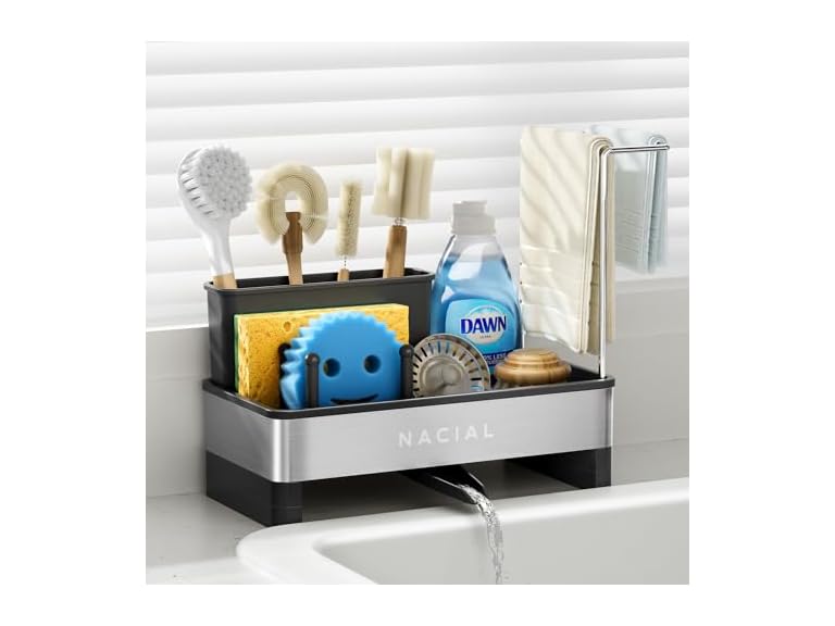 - Buy with Confidence: Nacial Sink Caddy seamlessly blends stylish design with smart storage, instantly organizing your kitchen sink, bathroom vanity, or countertop. When you choose Nacial, you’re not just getting high-quality sponge holder for kitchen; you’re also gaining peace of mind. Nacial offers 3-Year Limited Warranty, 1-Year Replacement Guarantee, and Lifetime Product Support. If you need any help [Login > choose "Your orders" > find the order lD >click "CT seller]. With Nacial, you can buy with confidence, Nacial Support is Always ON