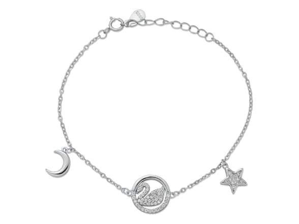 - (1) Namomi 925 Sterling Silver Rhodium Plated Swan Bracelet with Moon and Stars, 1.3 inch Extension