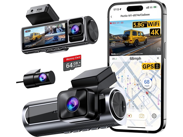 - 【Dash Cam Front and Rear Inside 4K+1080P+1080P】The Nanoby M1 dash cam captures crisp, high-resolution footage from all angles — 4K front, 1080P interior, and 1080P rear — providing comprehensive protection against accidents and road disputes. With 160° front and 155° cabin and rear views, this triple dash cam offers full coverage—ideal for daily driving, rideshares, taxis, and family trips.