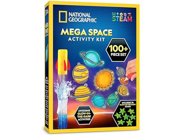 - National Geographic Mega Space Activity Kit - Glow in The Dark Science Craft Kit for Kids with 100+ Pieces, Launch a Rocket, Create Glowing Constellations, Paint a Solar System & More