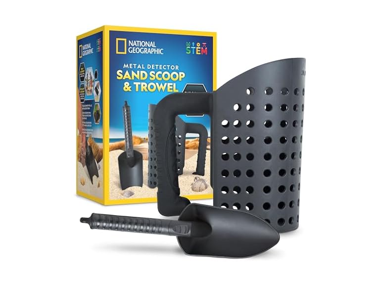 - NATIONAL GEOGRAPHIC Metal Detector Accessories – Includes Sand Scoop for Metal Detecting and Metal Detector Shovel, Use as Sand Sifter for The Beach, Metal Detecting Accessories