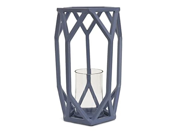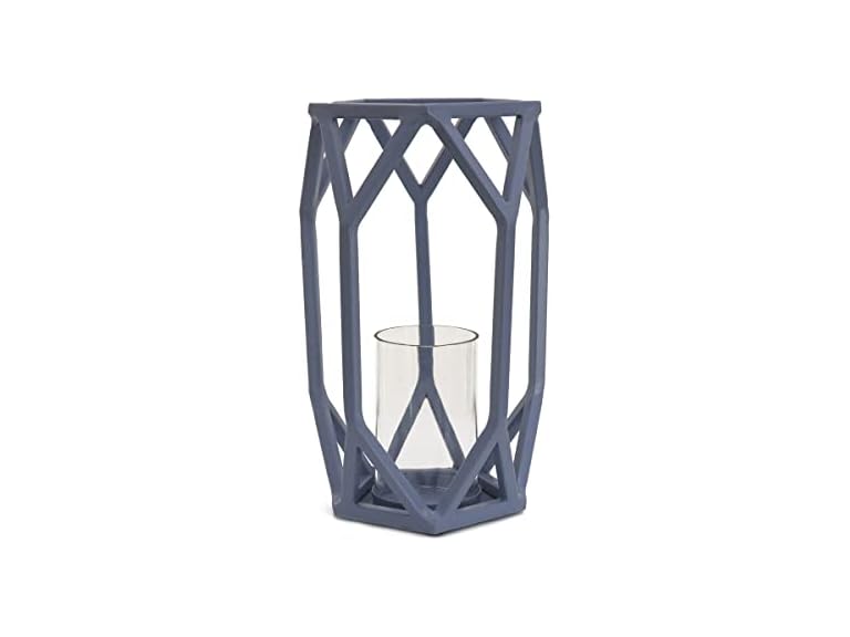 - (1) National Outdoor Living Lantern Candleholder, Dusty Blue, Modern Design and Finish, Includes Glass Chimney, 11 Inches