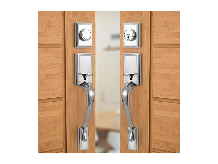 - 【DURABLE AND RUST-PROOF】The front entry door handle set features zinc alloy construction with a satin nickel finish. ANSI Grade 3 standard, our door handle and deadbolt are designed and tested with strength and durability in mind.