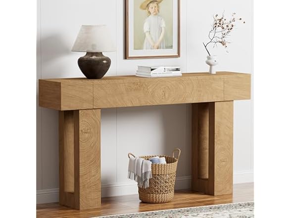 - 【Water and Scratch Resistant】This console table is crafted from high-quality engineered MDF, offering exceptional durability and resistance to daily wear and tear. The surface features a realistic wood finish that not only showcases the natural beauty of wood but also enhances the rustic charm of the overall design, combining both aesthetic appeal and durable construction. Additionally, the specially designed water-resistant and scratch-resistant finish makes the wood even more durable, while also making it easy to clean and maintain. Whether it’s water stains or dust, you can effortlessly wipe it clean.