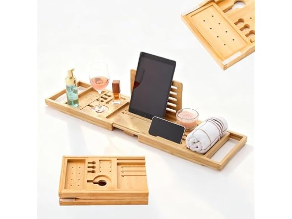- Space-Saving & Easy Storage - When your spa moment is over, convenience continues. This bamboo bath tray features a clever foldable design, allowing it to lie flat or be stored upright in narrow spaces. It easily tucks away beside your toilet or in a cabinet, making it the perfect space-saving tub caddy tray for bathtub for even the coziest of bathrooms. Enjoy luxury without sacrificing precious storage space.