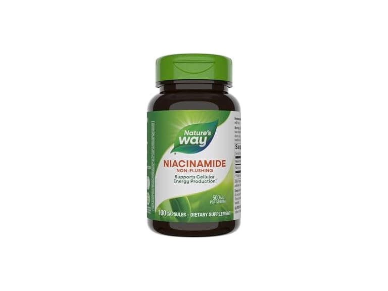 - Nature's Way Niacinamide, Non-Flushing Vitamin B3, Supports Cellular Energy*, 500 mg per Serving, 100 Capsules (Packaging May Vary)ā