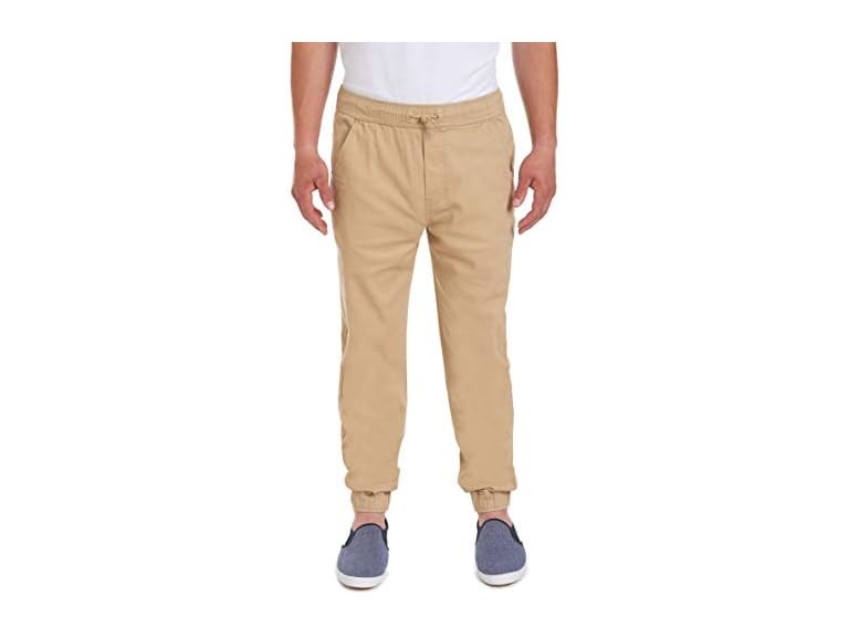 - Nautica modern pull-on jogger pant features tapered leg fit in a solid design, elasticized waistband and cuffs, no zipper, front pockets, rear-right pocket, reinforced knee and stretch fabric that can be put on with minimal effort