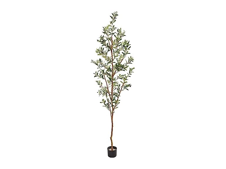 - INSPIRED BY THE MEDITERRANEAN: Featuring a massive height of 82 inches, this artificial olive tree is a perfect accent for your decor; The single trunk is made from natural wood and has easy-to-spread stems and branches with over 800 bright green leaves