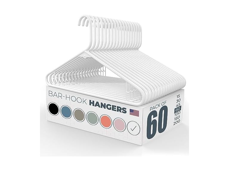 - Neaties Plastic Hangers 50 Pack (60 Count) – Made in The USA – 6lb Capacity Standard Clothes Hangers with Strap Hooks for Dresses, Lingerie, Shirts, Pants, and Jackets – White
