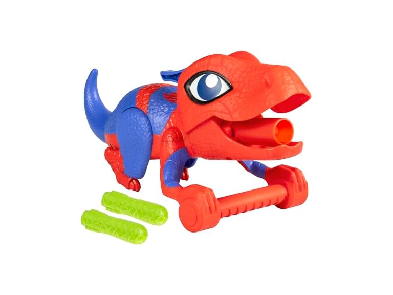 - EASY TO USE FOR PRESCHOOLERS: Boys and girls ages 3 and up can load a dart, pull Spidey-Rex's tail to prep, and press down on his head to launch