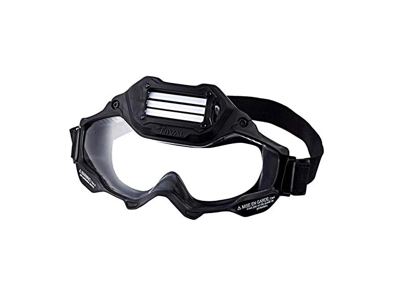 Battlers can show their team colors with Nerf Rival Vision Gear! These goggles have a team color indicator bar that can be changed by moving the lever to display red, blue, or white to designate the player as a member of Team Red, Team Blue, or Phantom Corps. The goggles are designed for a comfortable fit and have an adjustable elastic strap. Gear up for battle with Nerf Rival Vision Gear! Nerf and all related properties are trademarks of Hasbro.