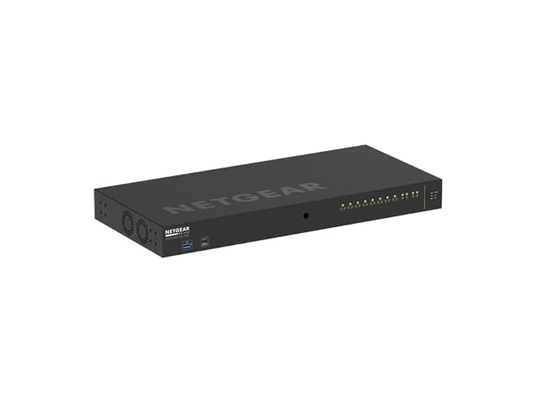 Switching Engineered for AV over IPThe NETGEAR AV Line M4250 series was designed with input from AV Professionals. The result is a line of switches built from the ground up to support 1Gb audio and video over IP with customized hardware and software along with dedicated service and support.NETGEAR M4250 series key features: Ranges from 8 to 16 ports with a variety of PoE+ and Ultra90 PoE++ options for 15.4W, 30W, 60W, 75W and 90W AVoIP endpoints Uplink options include 1G for audio installations or standalone video installations as well as 10G uplinks for larger scale video deployments Also includes 12-port multi-gigabit Ethernet and 16-port 1G/10G fiber models for plug and play aggregation in a star topology Designed for a clean integration with traditionalrack-mounted, AV equipment The M4250 switches come with a sleek, black display panel with status in front and all cabling plus additional status in the back Reversed mounting is possible when ports are desired on the front of the rack A second pair of rackmount ears allows the switches to be mounted recessed by 2-inches to allow for the cabling Software-controlled fan adjustments enable the fans to be turned off when ambient temperature and PoE loads are appropriate for a totally fanless operation Threaded holes on the bottom (4xM5 for 50x100mm VESA) and in front (1xM10 for clamps) allow for universal mountingoptionsoutside the rack as well NETGEAR M4250 series AV software features: Pre-configured for audio and video over IP out of the box, the M4250 switches enable encoders and decoders to be connected with zero configuration When more configuration is required, an AV web-based GUI is available at the switch IP address:8080 This interface has been specially designed for AV installers with specific AV-related controls made more accessible and with port-based profiles For audio, profiles for Dante, Q-SYS and AES67