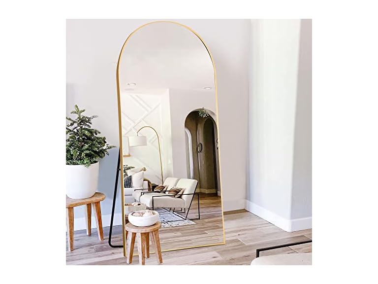 - (1) NeuType Arched Full Length Mirror, 71"x32", Large Full Body Mirror with Wood Frame, Shatter Protection, Wall-Mounted Mirrors for Living Room or Dressing Room-Gold(Wood Arched