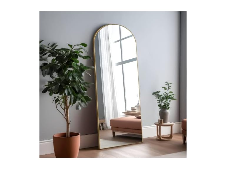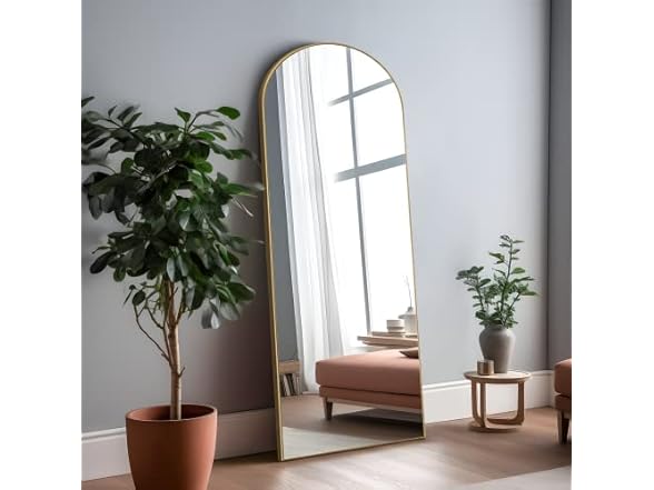 - (1) NeuType Arched Full Length Mirror 65"x22" Full Body Mirror Polymer Thin Frame Hanging or Leaning Against Wall Oversized Large Bedroom Mirror Floor Mirror Dressing Mirror with Stand Natural
