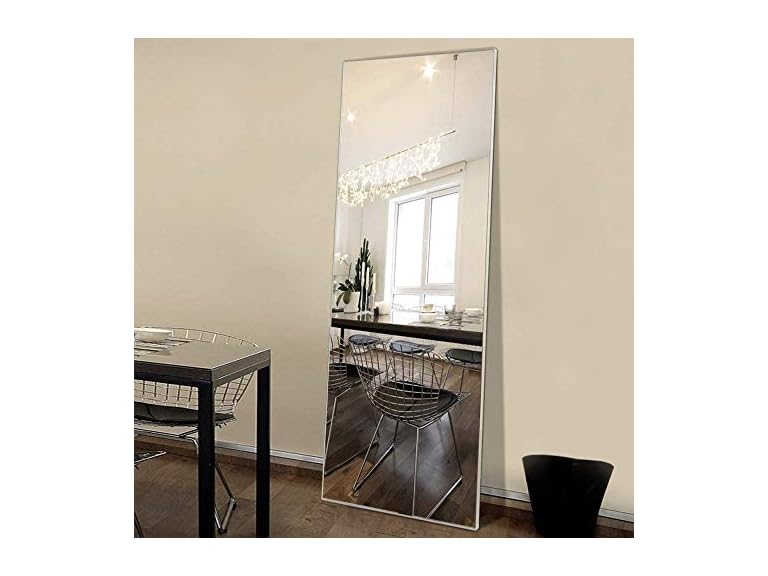 - (1) NeuType Full Length Mirror Standing Hanging or Leaning Against Wall, Large Rectangle Bedroom Mirror Floor Mirror Dressing Mirror Wall-Mounted Mirror, Aluminum Alloy Thin Frame, Silver, 65"x22"