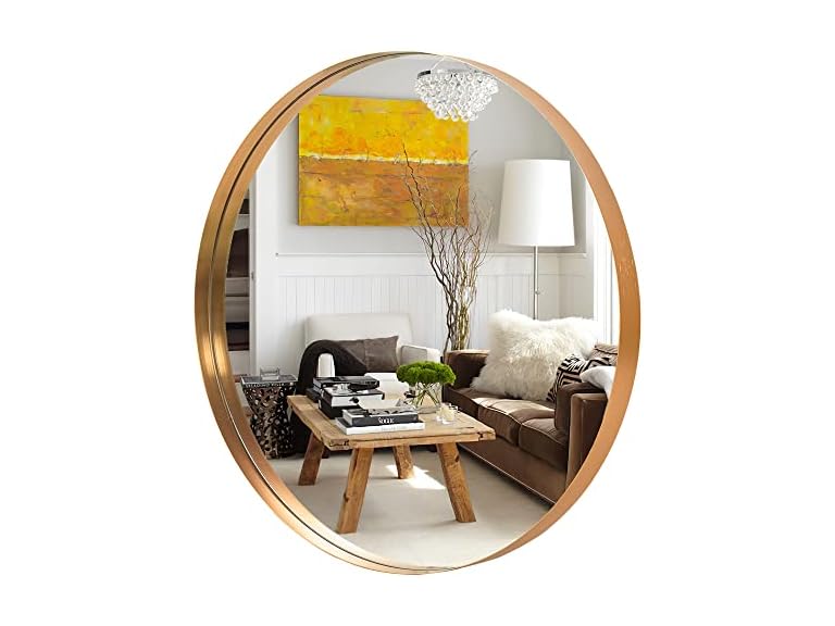 - (1) NeuType Round Mirror 32inch Circle Wall Mirror Metal Framed Wall Mirror Large Hanging Decorative Mirrors for Wall Bathroom Bedroom Living Room (Gold, 32" x 32")